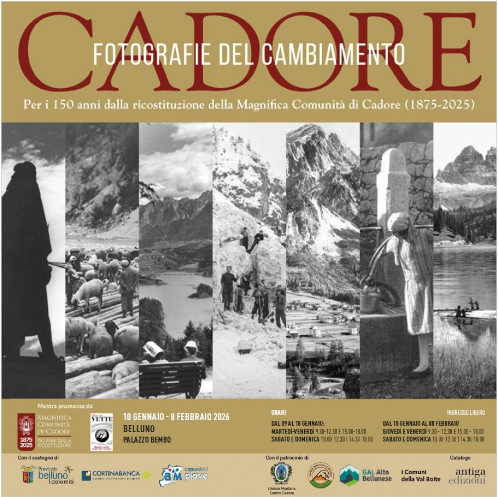 Dal 9 gennaio all 8 febbraio 2026 la mostra Cadore - fotografie del cambiamento, reduce dal successo della scorsa estate a Pieve di Cadore, verrà esposta a Palazzo Bembo a Belluno in occasione della prestigiosa rassegna OLTRE LE VETTE